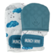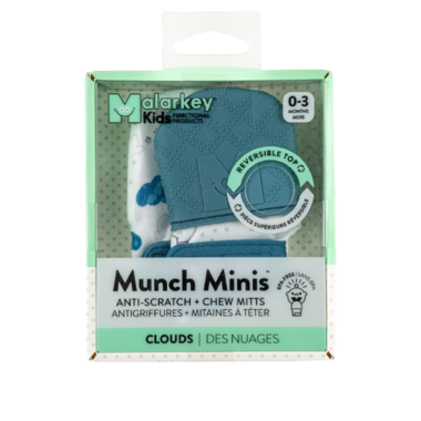 Malarkey Kids has combined the traditional anti-scratch mittens with the trademark Munch Mitt silicone cap technology to make for the perfect newborn anti scratch + chew mitts. One side of the double-sided flip top cap features soft, textured silicone for baby to suckle on, while the opposite side provides soft fabric to protect against scratches. Giving dual uses in one pair of mitts, simply choose the side required and strap it on baby's hands.