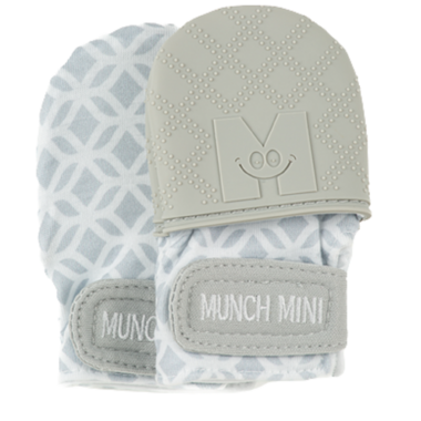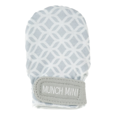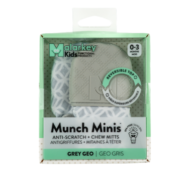 Malarkey Kids has combined the traditional anti-scratch mittens with the trademark Munch Mitt silicone cap technology to make for the perfect newborn anti scratch + chew mitts. One side of the double-sided flip top cap features soft, textured silicone for baby to suckle on, while the opposite side provides soft fabric to protect against scratches. Giving dual uses in one pair of mitts, simply choose the side required and strap it on baby's hands.