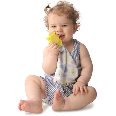 The Malarkey Kids Munch-It Blanket is a convenient teether and cozy blanket for baby. Designed in fun, yet functional shapes to target baby's emerging front and eye teeth as well as early molars. The teether is made of soft, flexible, BPA-free, food-grade silicone. The soft, fabric blanket is for baby to snuggle and absorbs excess drool from chewing/teething.