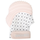 Malarkey Kids has combined the traditional anti-scratch mittens with the trademark Munch Mitt silicone cap technology to make for the perfect newborn anti scratch + chew mitts. One side of the double-sided flip top cap features soft, textured silicone for baby to suckle on, while the opposite side provides soft fabric to protect against scratches.