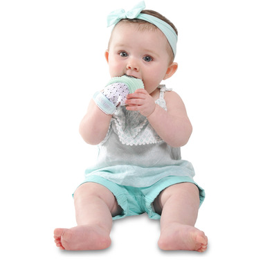 The Munch Mitt is a “handy” teething solution that prevents the constant dropping of teething toys. It provides easy access pain relief for babies who are still learning consistent grip and direction and protects the hands from irritation due to chewing.