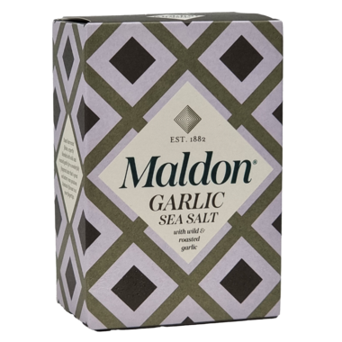 Maldon Garlic Sea Salt Flakes combines Maldon's signature hand-harvested flakes with real garlic for instant savoury richness. Add to roast potatoes, grilled meats, vegetables and pasta sauces to elevate everyday dishes with aromatic flavour and a delicate crunch.