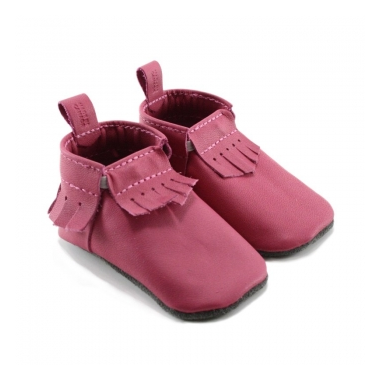 100% genuine baby safe leather moccasins in fuchsia coloured leather.