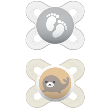 Choose the small and lightweight newborn pacifiers to keep baby calm with a pacifier you will both love. MAM pacifiers feature an innovative nipple designed to promote healthy oral development so you can soothe your baby with confidence. Baby will love latching onto the soothing pacifier nipple that, with the help of a built-in air channel, naturally flattens and extends when sucked, mimicking a human nipple during breastfeeding. All MAM pacifiers are orthodontic, featuring a symmetrical nipple that fits perfectly in baby’s mouth at any angle. MAM’s medically engineered nipples feature life-like, SkinSoft textured silicone that feels more natural, just like mom.