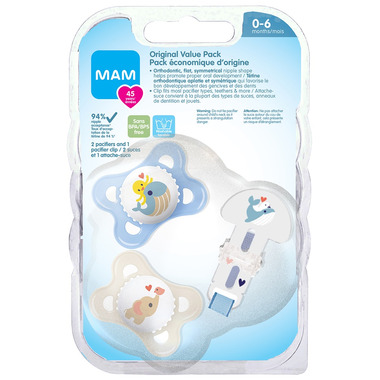 MAM pacifiers feature an innovative nipple designed to promote healthy oral development so you can soothe your baby with confidence. Baby will love latching onto the soothing pacifier nipple that, with the help of a built-in air channel, naturally flattens and extends when sucked, mimicking a human nipple during breastfeeding. And all MAM pacifiers are orthodontic, featuring a symmetrical nipple that fits perfectly in baby's mouth at any angle.