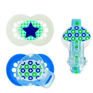 This BPA-free Trends MAM Pacifier was developed by leading pediatric dentists and developmental psychologists to provide maximum comfort and style for babies 6 months and up. MAM’s cutting-edge pacifiers combine technological innovation and trendsetting design to help give babies a healthy start in life. Includes matching clip to keep the teether secure.  Includes 2 BPA-free MAM Trends Pacifiers & 1 matching clip.