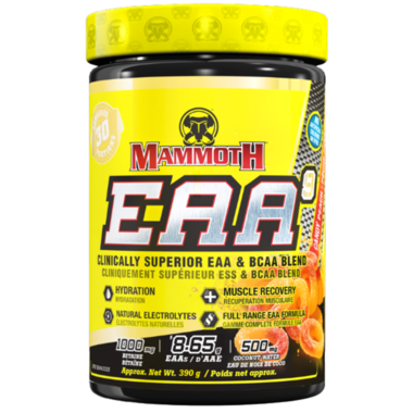 Mammoth EAA9 is a great tasting power packed performance and hydration beverage that will help reduce the onset of muscular fatigue during training as well as kickstart the recovery process essential to achieving your strength & fitness goals. When rapid recovery is what you are after Mammoth EAA9 delivers with a fast absorption rate that allows the rapid release of amino acids to be shuttled directly to your working muscles. Mammoth EAA9 was designed to be used by both men and women regardless of whether you are a fitness enthusiast, bodybuilder, elite athlete or somewhere in between.