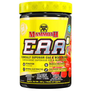 Mammoth EAA9 is a great tasting power packed performance and hydration beverage that will help reduce the onset of muscular fatigue during training as well as kickstart the recovery process essential to achieving your strength & fitness goals. When rapid recovery is what you are after Mammoth EAA9 delivers with a fast absorption rate that allows the rapid release of amino acids to be shuttled directly to your working muscles. Mammoth EAA9 was designed to be used by both men and women regardless of whether you are a fitness enthusiast, bodybuilder, elite athlete or somewhere in between.
