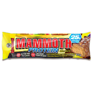 Mammoth Hunger? Get Mammoth Satisfaction with the Mammoth Protein Bar. The Mammoth Protein Bar is a quadruple layer high protein bar packed with 25 grams of Protein, less than 5 grams of Sugar and the delicious taste you’ve come to expect from Mammoth.