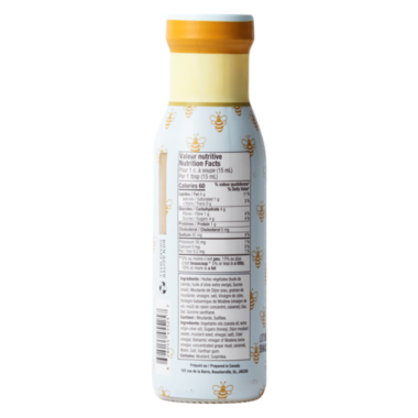Vegetable oils, (canola oil, extra virgin olive oil), Sugar ( honey) , Dijon mustard (water, mustard seeds, vinegar, salt), Cider vinegar, balsamic vinegar of Modena (wine vinegar, concentrated grape must. Caramel), Water, Salt, Xanthan gum. Contains : Mustard seeds, Sulphites