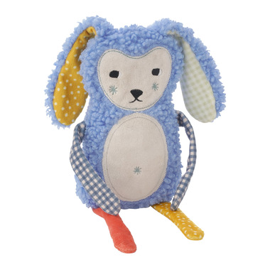 Manhattan Pet Toy's Squinkles Sunny the Bunny Sherpa-Style Soft Squeaker dog toy animal is a bemusement of artistry infused into a dog stimulation toy with squeakers concealed in the belly and fluffy tail. The sensory dog toy has gangly multi-colored arms and legs, each with internal plastic crinkle paper, serving up a bonus of satisfying sound.
