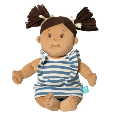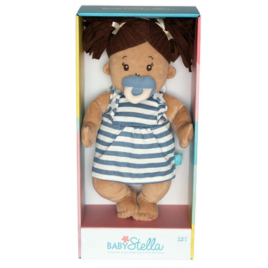 The Baby Stella collection will delight little ones with a new look they will love! Baby Stella is an award-winning doll collection that is a perfect first soft doll to inspire creative role play in little ones. Baby Stella dolls are made from soft fabrics and beautifully crafted with life-like details such as a belly button and perfectly plump tummy, embroidered features, removable outfit, diaper, and magnetic pacifier.