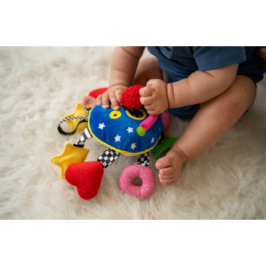 Rated 5 out of 5 by from Our 3 month old loves it! This is easily her favourite toy. Hung it above her playmat and she’ll spend 10min independently playing with it, swatting and grabbing with hands and feet. Something about this guy has the power to hold her attention better than any other toy.