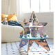Explore the ultimate activity center that includes 8 wire bead runs, 11 gliders, 2 wood clacking doors, 5 spinners, and 1 transparent door that slides!
