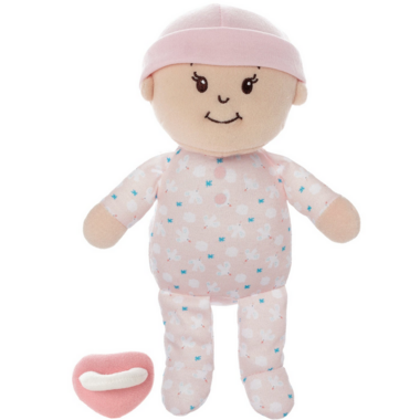 The ultimate first baby doll set! Includes a 100% soft doll that offers magnetic pacifier play, a sittable design, and a soft bassinet.