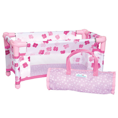 This portable Take Along Travel Crib is perfect for little ones to put their Baby Stella or Wee Baby Stella to bed. Fabric doll crib has metal poles and plastic joints that fit together for easy assembly. Also comes with a zippered carrying case to pack it all up so little ones can take it with them wherever they go. Adult assembly required.