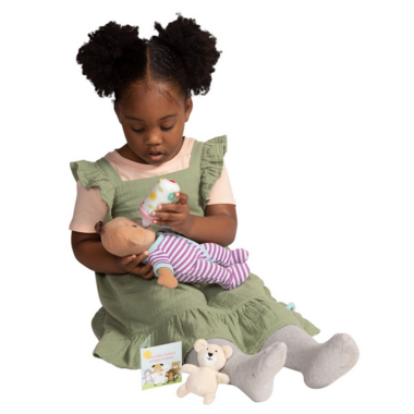 Baby Stellla is soft and perfect for my toddler granddaughter who just became a big sister. The baby bottle is magnetic and makes it easy to feed the doll. She loves the teddy bear and little book for pretend bedtime. I would highly recommend this set.