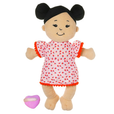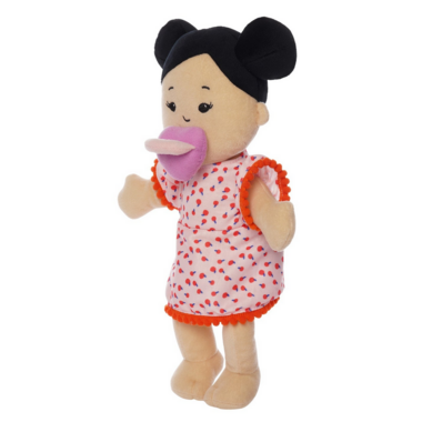 A soft and huggable doll that has a magnetic pacifier with beaming beige skin, cute black buns and life-like features lets play time come to life!
