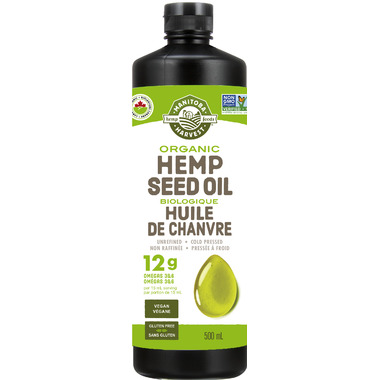 Manitoba Harvest Organic Hemp Seed Oil made unrefined and cold pressed.