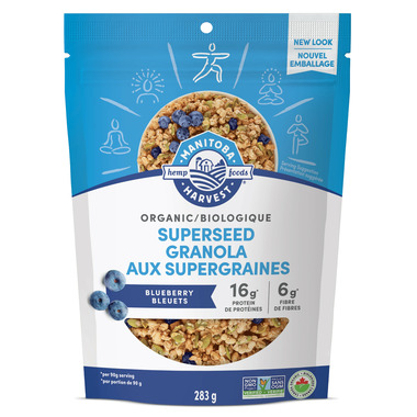 Each serving of Manitoba Harvest Superseed Granola delivers 16g of protein, 6g of omegas 3 and 6 amd high-quality, organic ingredients including Manitoba Harvest Hemp Hearts. Source of 11 essential Vitamins and Minerals.