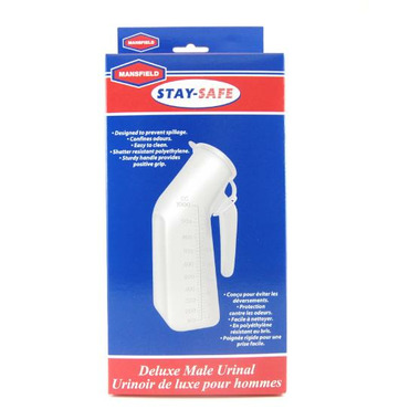 This male urinal is essential to the bedridden patient.  Makes the patient more self-sufficient and is especially helpful at night for any man who has difficulty getting out of bed.
