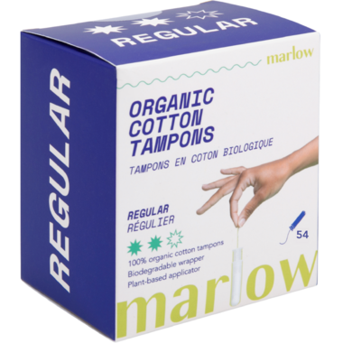 Canadian-founded Marlow Regular Tampons are thoughtfully designed for comfort, safety, and ease.