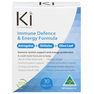 Ki Immune Defence & Energy Formula contains Astragalus, a popular Chinese herb used to enhance the immune system and Shiitake mushroom to boost white blood cells. Olive leaf is also a powerful herb that assists with general health and wellbeing.