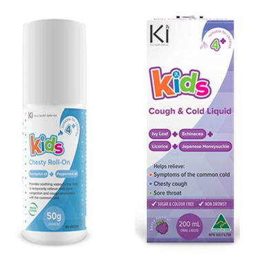 Martin & Pleasance Ki Kids Cough & Cold Liquid + Kids Chesty Roll On Bundle