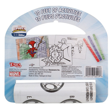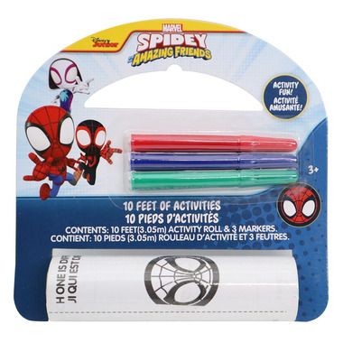 A great portable activity set of endless fun! Unroll 10 feet of Spider-Man activities of fun and colouring. Includes a 10-foot roll of activities, 3 markers, and a sticker sheet.