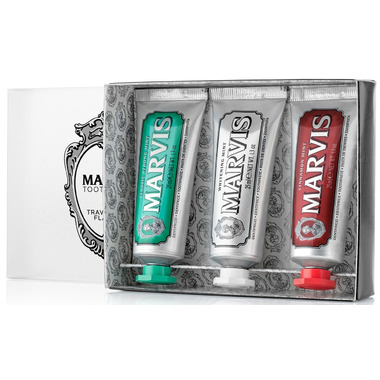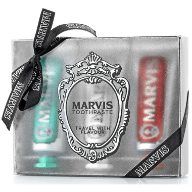 Marvis Toothpaste Travel With Flavour Gift Set is perfect for trying out Marvis Toothpastes or to take during travel. The 3 flavours included are their Classic Mint, Whitening Mint, and Cinnamon Mint. Alum powder based, these polish the teeth smoothly without being harmful