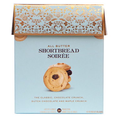 Treat yourself or a loved one to the ultimate indulgence with the Large Gift Box of Shortbread Cookies. Featuring 24 decadent cookies in a variety of delicious flavours, this beautifully packaged box is perfect for any occasion. Inside contains: Classic, Chocolate Crunch, Maple Crunch and Dutch Chocolate shortbread. Plus, with a luxurious gold foil pattern on the lid, its ready for gift-giving right out of the box. Whether for birthdays, holidays, or special milestones, this gift box is sure to delight even the most discerning tastebuds.
