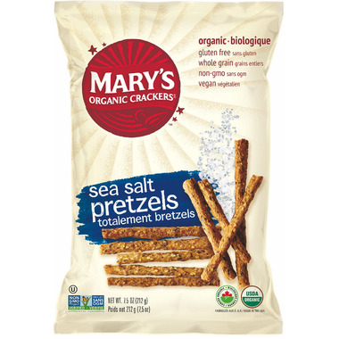 Mary's Organic Crackers Sea Salt Pretzels use organic, whole grain brown rice, quinoa, flax seeds, sesame seeds, amaranth, millet and chia seeds to make a delicious, unique pretzel. A light and crunchy snack, these pretzels are dusted with sea salt, accenting the pure nutty flavors of our ancient grains and seeds.