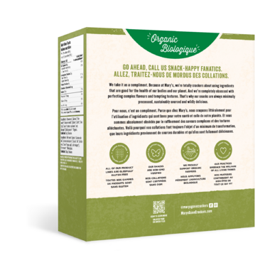 Mary's Organic Crackers traditional recipe of organic, gluten free ingredients ensures every bite is high quality and memorable. Crispy, satisfying and distinctive, Mary’s Original Seed Crackers with Herbs have a rich, nutty flavor enhanced by the earthy aroma and taste of select herbs.