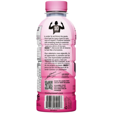 Hints of pineapple notes with classic fruit punch aroma and taste. A balance of sweetness and citrus taste with no mineral or vitamin aftertaste. Flavor name inspired by the city where Messi and his family live, Messi's current and next chapter.