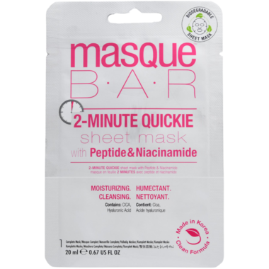 A 2-Minute Quickie Sheet Mask with Peptide and Niacinamide which provides moisturizing and cleansing benefits to the skin.