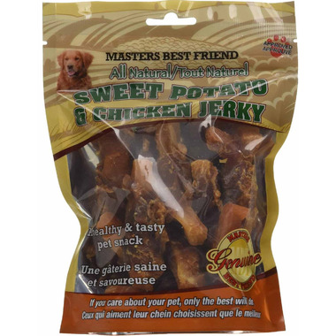 Masters Best Friend 227g sweet potato with chicken breast are all natural dog treats that provide excellent exercise for healthy teeth and gums; produced under strict quality control procedures from veterinarian inspected livestock.