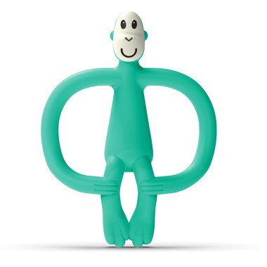 A fun soft textured silicone teether. Clever bumps for massaging the