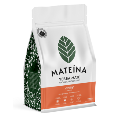 Mateina Organic Yerba Mate Tea Citrus is a loose unsmoked yerba mate, packaged in Canada, supports local farmers, and is a product of Argentina. Naturally energizing!