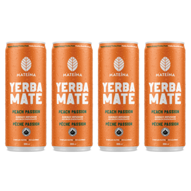 - 4x Mateina Yerba Mate Peach Passion, 355mL