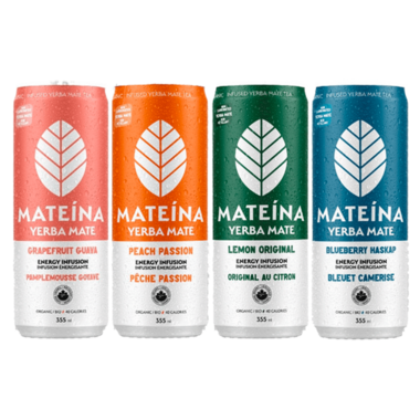 Mateina Yerba Mate - Blueberry Haskap -Infused organic yerba mate (purified water, organic brewed roasted yerba mate), Sugars (organic cane sugar, organic blueberry juice concentrate), Organic natural flavor, Organic yerba mate extract, Organic lemon juice concentrate Citric acid.