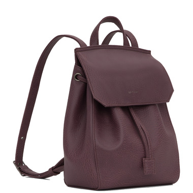 Backpack with adjustable straps. Drawstring closure, with hidden tab