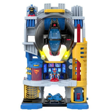 Preschool kids can act out epic Justice League adventures with the Imaginext DC Super Friends Ultimate Headquartersٙ playset from Fisher-Price. This 2 foot-tall Hall of Justice playset features 4 floors of play for young crime-fighters to explore, cool lights and sounds, a hidden projectile launcher and jail cell, plus a transforming Batwing and push-along Batcycle. Kids will love sending Batman and Supermanٙ racing into action to defeat the bad guys again and again.