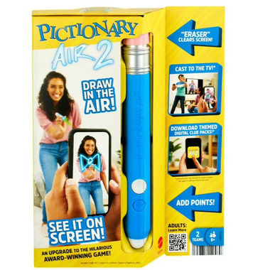 The original award-winning drawing game gets a high-tech boost with Pictionary Air 2! Sketch clues in the air and see them on a device or cast to the TV. Now, with this Pictionary Air 2 update, players can add points and clear the screen using the pen. Also, download digital clue packs for all ages, so it can be played by multi-generational families, at kids parties or adult game nights!