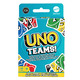 UNO Teams is a new way to play the classic game! Players still match color, number and symbol but instead of every-man-for-himself, they team up in pairs of two and play together to win. Special cards and rules help teammates work together, but both players must get rid of all the cards in their hands to win. And remember, when you (or your partner!) are down to your last card, don't forget to yell "UNO!"