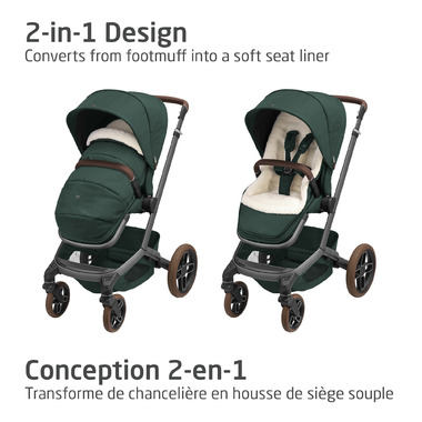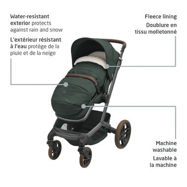 The water-resistant exterior and dirt-resistant panel help shield your little one and your stroller from the elements, while the two-way zipper and snap buttons make it easy to adjust for changing weather. Thoughtfully made with 100% recycled Eco Care fabrics, the footmuff is machine washable for everyday convenience. It stays on while folding and fits most Maxi-Cosi strollers, adding a perfect colour match and extra comfort with every ride.