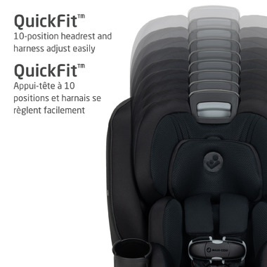 • QUICKFIT 10-POSITION HEADREST: and harness adjust easily when your child enters the next growth stage.