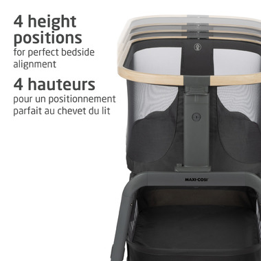 Versatility is key, and the Iora has you covered with 4 adjustable height positions and 3 slide positions, allowing you to customize the bassinet's proximity for optimal bedside alignment. Effortlessly glide it closer for nighttime feedings or comfort, ensuring your baby stays cozy and cared for at all times.