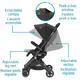 - Extendable protective sunshade with UPF 50 and mesh peek-a-boo window