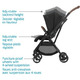 • Extendable canopy with peekaboo window Infant car seat adapters, travel bag, and carrying strap included