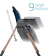 The Minla is full of possibilities. With its five recline positions, four tray positions and eight heights, you can use it as a relaxed infant seat thanks to the cozy inlay, as a high chair, as a cool booster seat with tray. The possibilities to have your child right there with you at the table are endless. A customized fit as your child grows? You got it, with the 6-in-1 Minla chair.